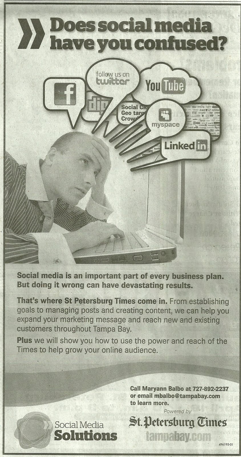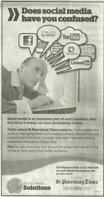 3. Social media is not an important part of every business plan. And this kind of hyperbole is so 1988. Doing it wrong can indeed have devastating results, but there’s nothing in this ad to tell me that the St. Petersburg Times would do it right.